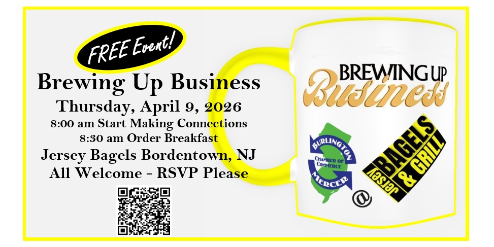 Brewing Up Business is an informal and low-key way to start your day and make some new business connections while eating breakfast. Our event is free to attend and everyone is welcome. The business networking and conversations start at 8 am. At 8:30 am you’ll order and pay for your own breakfast off the Jersey Bagels and Grill menu. Stay as long or as short as you can. Open to all chamber members and non-members. RSVP below using the link to our Eventbrite site.